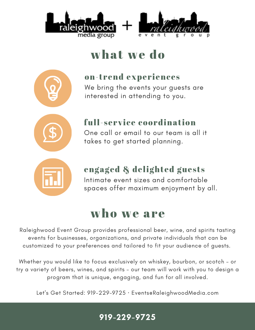 Beer Wine Spirits Coffee Tasting Events by Raleighwood Media Group + Raleighwood Event Group